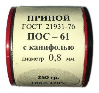 - Припой-катушка 250 гр. ПОС-61 д.0.8 мм. с канифолью по выгодной цене 580 р. руб.;