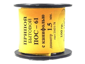 - Припой-катушка 50 г ПОС-61 д. 1,5 мм (с канифолью) по выгодной цене 150 р. руб.;