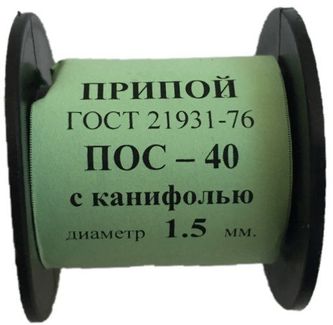 Припой-катушка 50 гр. ПОС-40 д.1.5 мм. с канифолью