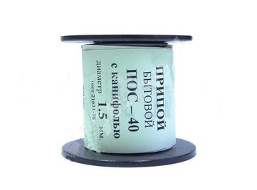 - Припой-катушка 50 гр. ПОС-40 д.1.5 мм. с канифолью по выгодной цене 85 р. руб.;