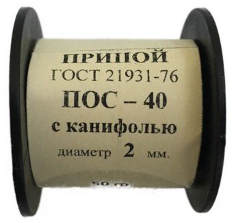 - Припой-катушка 50 гр. ПОС-40 д.2 мм. с канифолью по выгодной цене 85 р. руб.;