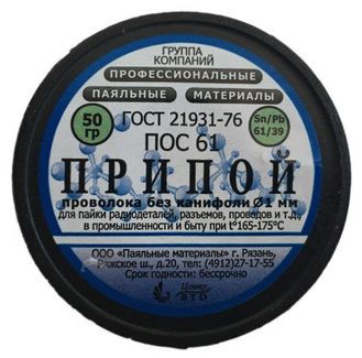 - Припой-катушка 50 гр. ПОС-61 д.1 мм. без канифоли по выгодной цене 113 р. руб.;