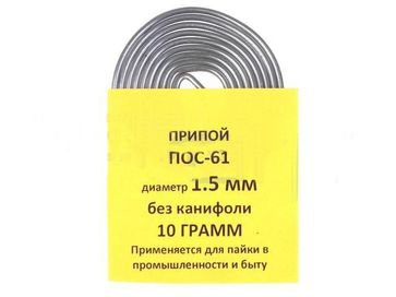 - Припой-спираль 10 г ПОС-61 д. 1,5 мм без канифоли по выгодной цене 50 р. руб.;