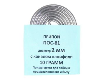 - Припой-спираль 10 г ПОС-61 д. 2 мм с канифолью по выгодной цене 50 р. руб.;