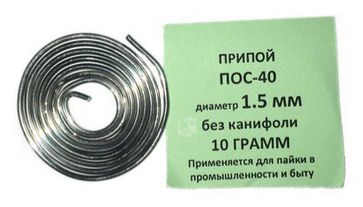 - Припой-спираль 10 гр. ПОС-40 д. 1.5 мм. без канифоли по выгодной цене 20 р. руб.;