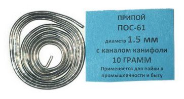 - Припой-спираль 10 гр. ПОС-61 д. 1.5 мм. с канифолью по выгодной цене 30 р. руб.;