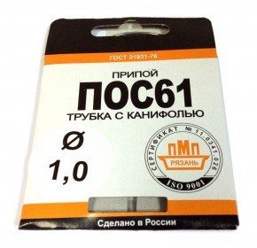 - Припой-спираль 20 г ПОС-61 д. 1 мм с канифолью по выгодной цене 90 р. руб.;