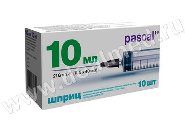 - Шприц одноразовый 10мл 3-х комп.с иглой 21G х 1 1 2 (0,8х40 мм) Луер, 1 шт, Pascal Medical, Россия по выгодной цене 10 р. руб.;