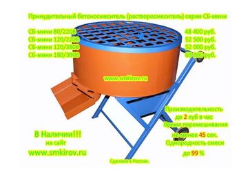 - Бетоносмеситель (растворосмеситель) принудительного действия СБ-мини по выгодной цене 67 770 р. руб.;
