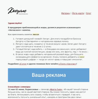 - Услуга Краткий анонс события в email-рассылке в рубрике "Интересные события" по выгодной цене 999 р. руб.;