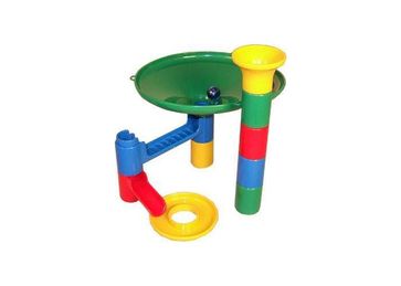 Детей от 3 до 8 лет. Marbutopia — серия динамических конструкторов, позволяющая создавать объёмные (вертикальные) лабиринты, по которым можно катать шарики. Конструкторы этого класса представляют собой набор разноцветных типовых узлов, позволяющих шарикам скатываться, направляющих их, а также создающих специальные эффекты (вроде звукового сопровождения, вращения «водяных колёс», подпрыгиваний шарика). Некоторые наборы этого типа имеют в комплекте батарейки, что добавляет им дополнительные возможности (например, скатывание заканчивается падением шарика на кнопку, что вызывает проигрывание мелодии или запускает элеватор, который поднимает шарик к стартовой точке). Более простые наборы позволяют использовать построенные лабиринты для скатывания не только шариков, но и воды. Конструктор Marbutopia, "Водоворот" (Whirlpool) из 13 деталей - первый шаг ребенка в мир конструирования объемных лабиринтов! Конструктор состоит из разноцветных пластиковых деталей (дорожки-переходники, "водоворот", вертикальные трубки и др.) и 4 стеклянных шарика-хамелеона. Шарик движется по дорожкам, исчезая в трубках лабиринта и появляясь снова. Конструктор Marbutopia, "Водоворот" (Whirlpool) способствует развитию координации, моторики, пространственного и трехмерного воображения, концентрации, планирования, стратегии, понятию причины и следствия. Конструирование лабиринтов полезно для развития пространственного мышления и воображения. Собирать конструктор можно как по схеме, которая прилагается, так и самостоятельно, мысленно представляя движение шарика. Серия увлекательных конструкторов Marbutopia позволяет развивать такие важные навыки, как координацию, моторику, пространственное и трехмерное воображение, концентрацию, планирование, стратегию, понятие причины и следствия. 3D конструктор Marbutopia, "Водоворот" (Whirlpool) из 13 деталей – за