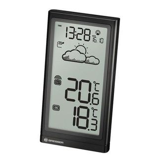 Bresser Temp – домашняя метеостанция, которая измеряет температуру внутри и снаружи помещения и составляет прогноз погоды на ближайшее время. Кроме того, в ней есть часы и календарь – метеостанция показывает текущее время и дату.За измерения в доме отвечает основной модуль, а измерениями на улице занимается беспроводной наружный датчик. Его можно разместить на удалении до 30 метров от метеостанции, информация передается по радиоканалу. Все измерения отображаются на большом монохромном цифровом экране. Его верхняя часть отведена под дату и время. Ниже находится иконка прогноза погоды, которая может принимать несколько значений: солнечно, переменная облачность, облачно, дождь, снег. Нижнюю часть экрана занимают текущие показания температуры – с основного модуля и с наружного датчика. Цифры крупные, контрастные, их хорошо видно даже с большого расстояния. Основной модуль и наружный датчик работают от батареек (нет в комплекте) Основные особенности: -измеряет температуру и составляет прогноз погоды на ближайшие 12 часов; - встроенные часы и календарь – показывает время и дату; - в комплекте наружный датчик – метеостанция проводит измерения внутри и снаружи помещения; - стильный и лаконичный дизайн – подходит к любому интерьеру. Комплект поставки: - метеостанция; - наружный датчик; - инструкция по эксплуатации и гарантийный талон. Технические характеристики и комплектация товара могут быть изменены производителем без уведомления. None