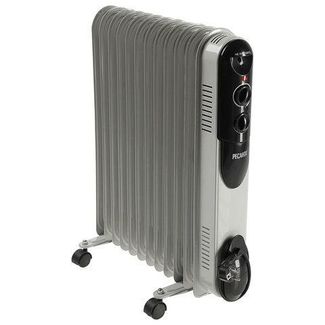 Масляный радиатор Ресанта ОМПТ-12Н, состоящий из 12 секций, сделает любое помещение размерами до 25 м², теплым и уютным. Радиатор устанавливается на пол, а за счет колесиков и удобной ручки его можно легко перемещать в любое место комнаты.Радиатору не требуется особого ухода, достаточно время от времени протирать его влажной тряпкой. Он подключается к домашней электросети (напряжение 220/240 В) с помощью шнура с вилкой. В отключенном состоянии шнур убирается в специальный отсек. Для управления масляным радиатором Ресанта ОМПТ-12Н на его корпусе размещены поворотные переключатели и индикатор рабочего состояния прибора. Благодаря им можно выбрать мощность нагрева из 3 представленных режимов. Максимальная мощность энергопотребления у радиатора составляет 2500 Вт. Регулируемый термостат обеспечит экономию электричества, автоматически отключая и включая радиатор. Для безопасного использования прибора предусмотрена функция защиты от перегрева, позволяющая отключать радиатор в случае сильного нагрева. None