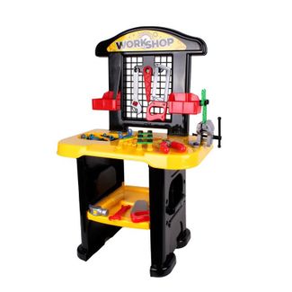 Настоящая игрушечная «Мастерская» для маленьких папиных помощников. Большой, удобный и устойчивый стол со столешницей из отверстиями и резьбой для винтов, набор инструментов, планки, гайки и болты - все, что нужно для юных мастеров. На столешнице есть углубление для мелких деталей, выгравирована линейка для быстрых замеров, а также тиски для фиксации. На крючках, корзинах и полки можно разместить все элементы и инструменты набора. Отверстия с резьбой на поверхности столешницы предназначены для крепления болтами планок. Расстояния между отверстиями в планках и на столешнице совпадают и мастерская превращается в настоящий конструктор - можно не ремонтировать, но и создавать новые механизмы. В наборе есть все для увлекательной игры: пилы по металлу и дереву, разводной ключ, уголок, молоток, плоскогубцы, тиски, ключ рожковый, отвертка, 17 планок разного размера, 4 фигурные детали и уголки, 25 болтов и 15 гаек. Все элементы изготовлены из качественного прочного пластика без запаха. С игрушечной "Мастерской" ребенок познакомится с основными инструментами и овладеет навыками работы с ними. Такие игры развивают мелкую моторику рук, фантазию, воображение, исполнительность и аккуратность. Игрушечная «Мастерская» от ТехноК непременно станет любимой игрушкой для ваших детей, позволит мальчикам вместе с папой проводить время интересно и полезно. В наборе 9 инструментов и 61 аксессуар. None Есть доставка.