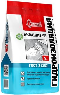 Назначение: Гидроизоляция W6 предназначена для выполнения гидроизоляции во всех помещениях с повышенной влажностью (бани, душевые, ванные комнаты и т.п.), для гидроизоляции внутренних и внешних поверхностей емкостей, гидроизоляции стен подвалов и фундаментов, для выполнения гидроизоляции террас и балконов. Гидроизоляция может использоваться на основаниях из бетона, на стенах из керамических, силикатных элементов, на цементных стяжках, цементных и цементно-известковых штукатурках.Место применения: Для применения внутри и снаружи зданий на сухих и слегка влажных основаниях.Свойства: АкваЩит W6 после высыхания образует бесшовное гидроизоляционное покрытие, стойкое к воздействию водопроводной воды и воды повышенной температуры. Наличные, банковская карта, безналичный расчет Возможен самовывоз. Есть доставка.