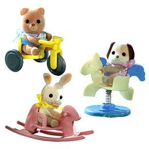 Игрушка Sylvanian Families Младенец в пластиковой коробке (медвежонок на велосипеде, собачка на качелях-лошадке, кролик на качалке)- хороший набор для детей. Данный набор будет интересен ребенку, так как с помощью таких игрушек можно придумать много разных историй. Будет весело так как все животные любят активный отдых. Благодаря тому, что игрушки маленького размера их легко можно брать с собой. Такой набор прекрасно подходит для сюжетно-ролевых игр, развивает фантазию, воображение и находчивость.В комплекте: медвеженок на велосипеде, собачка на качелях-лошадке, кролик на качалке.Материал:высококачественная пластмасса.Возраст:от 3 лет. None