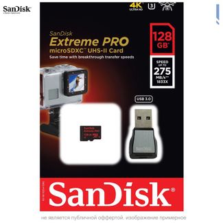 - Карта памяти Sandisk microSDXC 128GB Extreme PRO UHS-II с адаптером USB 3.0 micro SD SDSQXPJ-128G по выгодной цене 16 190 р. руб.;