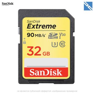 Карта памяти SanDisk 32 GB Extreme SDHC UHS-I Class 10. UHS Speed Class 3 (U3) V30. Емкая и выскоскоростная карта памяти SD позволяющая достигать скорости передачи данных чтение 90Мб/с, запись до 40-30Мб/с. Для съемки качественных фото и видео full-HD 3D, 4K видео вашей совместимой камерой. Переключатель защиты от записи. В комплекте программа Image Recovery для восстановления потерянных или стертых фото и видео файлов на флешке (требуется загрузка через интернет). Защита от влаги, шока и рентгена. без предоплаты, нал, безнал с НДС, яд, сб онлайн Возможен самовывоз. Есть доставка.