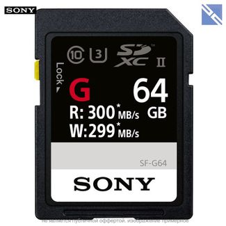- Карта памяти Sony 64GB SF-G Series UHS-II SDXC 300МБ с (U3, Class 10) SF-G64 T1 по выгодной цене 10 350 р. руб.;