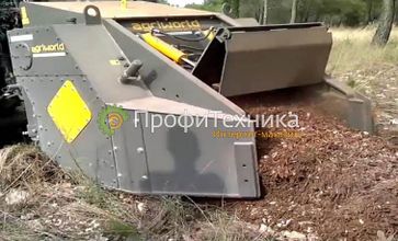 Почвенная фреза для измельчения пней и корней. Необходимая мощность трактора 100-130 л.с., рабочая ширина 900 см, максимальная глубина 25 см, вес 1950 кг. None