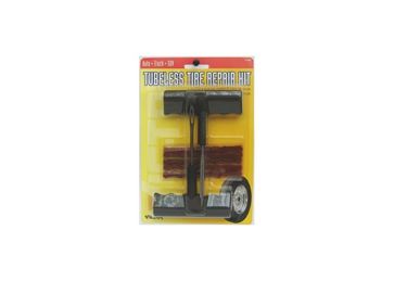Набор ориентирован для профессионального применения в шиномонтажных мастерских. Удобные Т-образные ручки инструментов обеспечивают более легкую установку жгутов. Усиленные жгуты можно использовать в боковых стенках, протекторе и плечевой зоне всех радиальных и диагональных бескамерных покрышек легковых машин, грузовиков и внедорожников. Набор содержит: Т-образное ручное шило с ушком, Т-образный рашпиль, самовулканизирующиеся жгуты для тяжелых условий эксплуатации, пропитанные клеем 5шт х 10см коричневого цвета. None