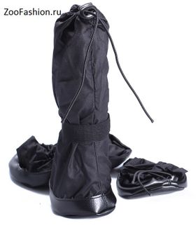 Ботинки для собак изготовлены из прочного износостойкого синтетического материала Дьюспо с водоотталкивающей пропиткой. Подошва выполнена из кожзаменителя, край ботинка оторочен широким рантом из кожзаменителя. Ботинок на лапе фиксируется с помощью кулиски – сверху и липучки – примерно на середине высоты. Предназначены для ношения в холодную грязную погоду и для защиты лап собаки от соли и реагентов. None