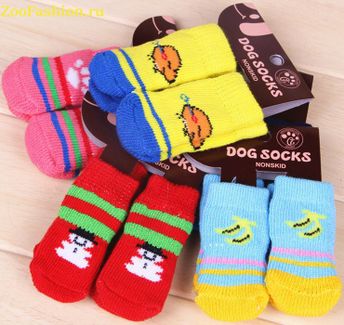 Забавные, но такие необходимые носки для собак. Красочные, сделанные из мягкой ткани противоскользящие носки. Они идеальны для использования в доме и квартире и дают Вашей собаке большую уверенность при ходьбе по линолеуму, скользкому ламинату и паркету. Кроме того, они защищают Ваше напольное покрытие от неизбежных царапин. Носки износостойкие. В одной упаковке 4 носка. Выбор расцветки покупателем не предусмотрен. None