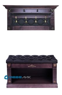 Внешнее оформление, цветовые варианты и патинированные декоративные элементы идеально сочетают обувницу «Сильвия» с настенными вешалками и банкеткой этой же серии.