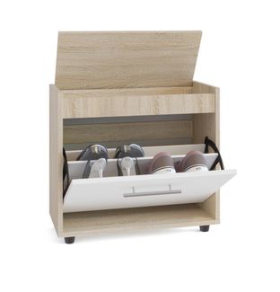 Обувница ТП-6 имеет одно отделение с двумя отсеками и рассчитана на 4 пары невысокой обуви. Сверху под крышкой располагается дополнительная ниша для аксессуаров. Также, данную модель можно использовать в качестве банкетки для переобувания. Максимальная нагрузка — 90 кг. Характеристики: