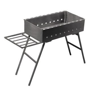 Мангал имеет сборно-разборную конструкцию для удобства транспортировки и хранения. Боковой столик может использоваться для хранения шампуров, установки на него подноса с необходимыми принадлежностями для готовки, емкости с продуктами для приготовления и т.п. Толщина топки 2 мм. Перед первым использованием мангала необходимо обжечь топку в течение 15-20 минут. Материал: высококачественная сталь. None