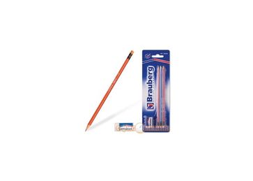 Карандаш чернографитовый в наборе BRAUBERG Карандаши BRAUBERG поставляются набором из трех штук. Каждый карандаш оснащен ластиком, кроме того, в комплект входит еще одна стирательная резинка. Характеристики