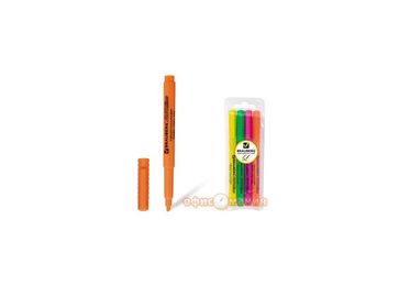 Набор маркров текстовыделителей BRAUBERG FLUOline Маркеры BRAUBERG FLUOline поставляются набором из четырех штук. В комплект входят маркеры зеленого, желтого, оранжевого и розового цветов. Чернила маркеров не выцветают на солнце. Характеристики