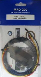 Устройство позволяет использовать команды с кнопок на руле автомобилей BMW (E38, E39, E46, X5(E53), Z4 и др.) для управления соответствующими функциями любых головных устройств JVC, кроме того длительное нажатие (2-3сек.) функции MUTE выполняет функцию POWER. Управление может как проводным, так и через инфракрасный глазок. Зависит от конкретной модели магнитолы.