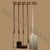 Средний набор предметов для русской печи. В состав набора входит кочерга, совок, ухват, щетка и хлебная лопата, а также крючки для подвешивания предметов набора на стене.