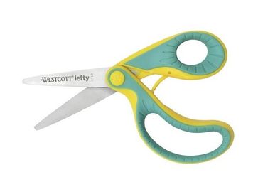 Ножницы Westcott Ergo Junior для левшей с эргономичной формой колец и пружинящим фиксатором созданы созданы для самых маленьких левшей и идеально подойдут для возврата 4-6 лет.