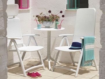 Стулья изготовлены из монолитного пластика без добавления вторичного материала. Основа - полипропилен со стекловолокном, придающий высокую прочность. Материал прокрашен в массе, поэтому он не выцветет от воздействия солнечных лучей и царапины видны не будут. Ножки не скользят. Поверхность изделий - матовая. Кресло Darsena складывается.