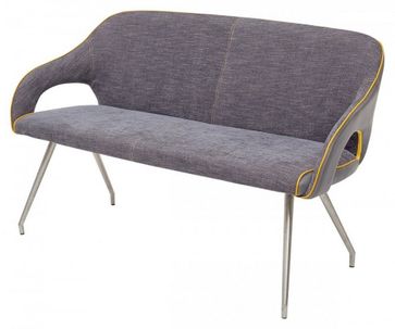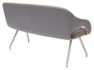 Сиденье и спинка с внутренней стороны обиты тканью серого цвета с контрастной желтой окантовкой, спинка с наружней стороны обито экокожей серого цвета.