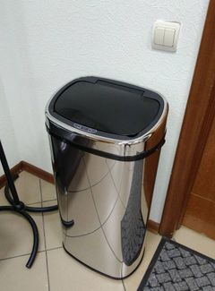 При поднесении руки к сенсорному мусорному ведру, срабатывает датчик движения и урна открывается, крышка ведра закрывается автоматически через 3 секунды, устройство работает от четырех батареек АА, одного комплекта батареек, при постоянном использовании ведра, хватает до четырёх месяцев! Хромированный корпус надежен в использовании. Полированная поверхность придает урне стильный и современный внешний вид. Комплектуется держателем для пакетов.