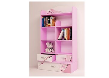 Cтеллаж широкий розовый (Адвеста) выполнен в общем стиле детской комнаты от компании Адвеста.