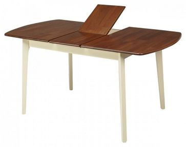 Стол обеденный раскладной 3248 крем - дуб Небольшой деревянный стол. Ножки стола и столешница выполнены из массива гевеи и акации. Вставка - "бабочка". Этот стол хорошо подойдет для небольшой гостиной или кухни. Данная модель рассчитана на 6-8 человек. Стол упакован в 1 коробку. Поставляется в разобранном виде. Характеристики: