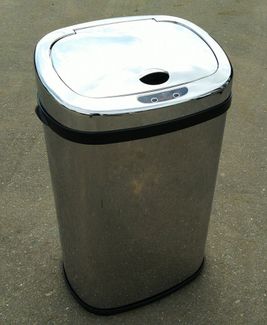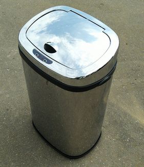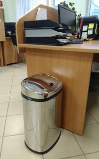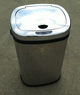 Современное сенсорное мусорное ведро объемом 30 литров. При поднесении руки к сенсорному мусорному ведру, срабатывает датчик движения и урна открывается, крышка ведра закрывается автоматически через 3 секунды, устройство работает от четырех батареек АА, одного комплекта батареек, при постоянном использовании ведра, хватает до четырёх месяцев! Хромированный корпус надежен в использовании. Полированная поверхность придает урне стильный и современный внешний вид. Комплектуется держателем для пакетов.