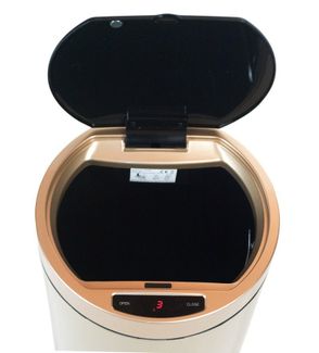 Мусорное ведро с автоматической крышкой из нержавеющей стали, цвета ЗОЛОТАЯ ШАМПАНЬ, предназначено для использования как в санузлах жилых помещений и учреждений, кухонных зонах и зонах приема пищи, а также в других жилых помещениях, в которых имеется потребность в утилизации небольшого количества отходов. Современное сенсорное мусорное ведро EK9285CG-12L оснащено новейшей системой электронного сенсорного управления с сокращенным временем реагирования, внутренним полипропиленовым контейнером, а также корпусом из высококачественной нержавеющей стали, окрашенной в элеганьный цвет ЗОЛОТАЯ ШАМПАНЬ, со специальным покрытием, защищающим ведро от появления на поверхности жирных отпечатков пальцев. Мусорное ведро EK9285CG-12L, имеет современный запатентованный дизайн и изготовлена из самых современных высококачественных материалов. Комфортность применения этой модели и использование в ее изготовлении передовых технологий позволили удостоить модель дипломом международной выставки во Франкфурте-на-Майне. Мусорное ведро EK9285CG-12L это стильный аксессуар, достойный стать украшением в современном изысканном интерьере.