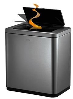 Сенсорное ведро для бытовых отходов EKO из нержавеющей стали с обработкой, исключающей появление на поверхности отпечатков пальцев идеально подходит для использования в современных