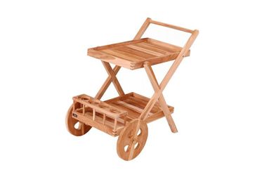 Двухъярусный сервировочный столик Кремона из тикового дерева оснащен колесиками для легкого передвижения. Несмотря на компактный размер, нижний ярус столика оснещен 4 удобными подставками для напитков.