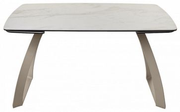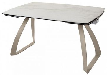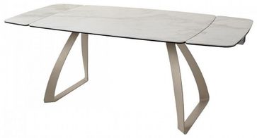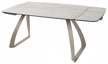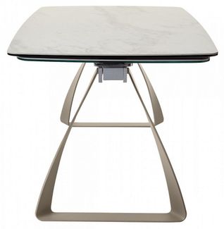 раскладывается по бокам столешницы, две вставки по 30 см; керамическая столешница "под мрамор", толщина столешницы 13 мм (керамика 5 мм + стекло 8 мм); основание стола - металл, цвет - каппучино; Упакован в 2 коробки.