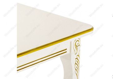 Стол Каллисто патина золото - изысканная модель, выполненная из массива бука в классическом стиле. Раскладывается. Упакован в одну коробку. Материалы: Столешница - МДФшпон Каркас - массив бука Размеры (мм): Длина - 1060 Высота - 760 Ширина - 670 Длина в разложенном виде, мм: 1360 Цвет: Кремовый, патина золото