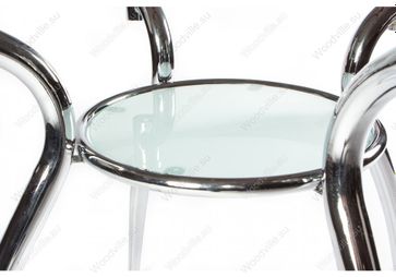 Описание Материал каркаса: Хромированный металл Материал столешницы: Закаленное стекло Материал подстолья: Закаленное стекло