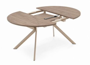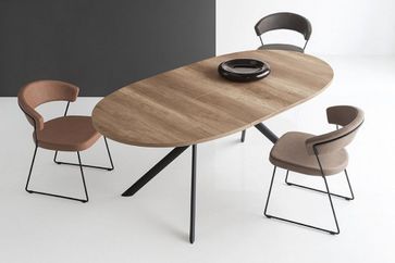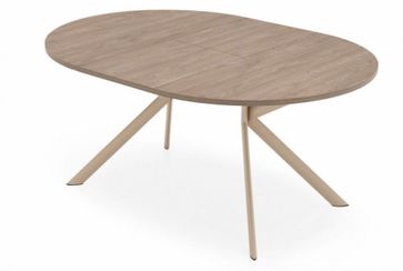 Раскладной овальный обеденный стол GIOVE нуга итальянского производства рассчитан на 6-8 персон, овальная столешница может быть выполнена из пластика повышенной прочности, закаленного стекла или керамики. Каркас и ножки выполнены из металла.