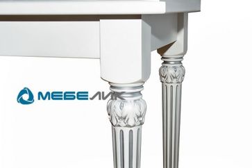 Обеденные столы серии «Жерар» - классические столы с точеными ножками, украшенными резьбой и продольными фрезеровками, со столешницами шириной 80см прямоугольной формы с соотношением сторон от 1,5 до 2,5 в зависимости от модели. Отличие этих столов от столов серий «Васко» и «Меран» конечно в их изящных ножках. Кроме продольных гравировок, ножки украшены резьбой по дереву в виде виноградных листьев – классический прием при оформлении мебели. Кроме того, окончания ножек около самого пола так же имеют элементы декоративной резьбы с растительными мотивами, напоминающими узкие листья. Такое оформление ножек столов позволяет использовать их в интерьерах оформленных в классическом стиле.