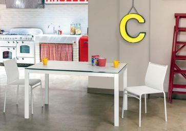 Стеклянный стол на кухню EOS белый глянец Стол раскладной итальянской фабрики Bontempi Casa.
